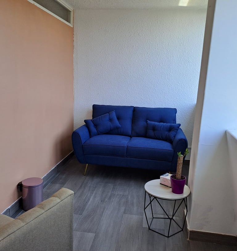 Excelente espacio para brindar atención individual, cuenta con sofá 1 plaza para terapeuta y sofá 2 plazas para paciente.